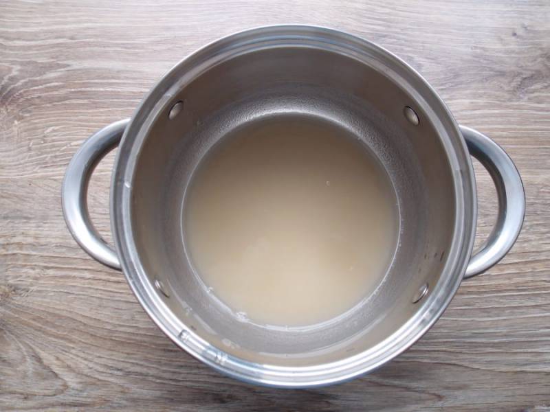 В кастрюлю налейте воду и всыпьте агар-агар, оставьте его на 40 минут.