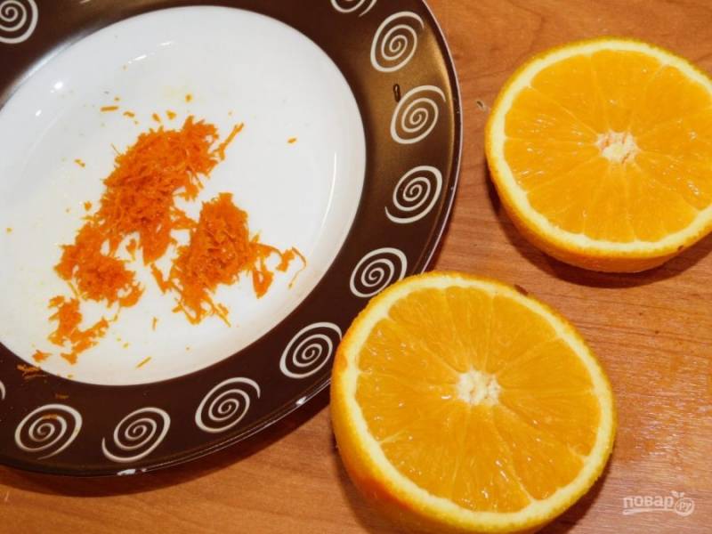 - Цедра апельсина 2 ст. ложки 1 в тесто, 1 в карамель