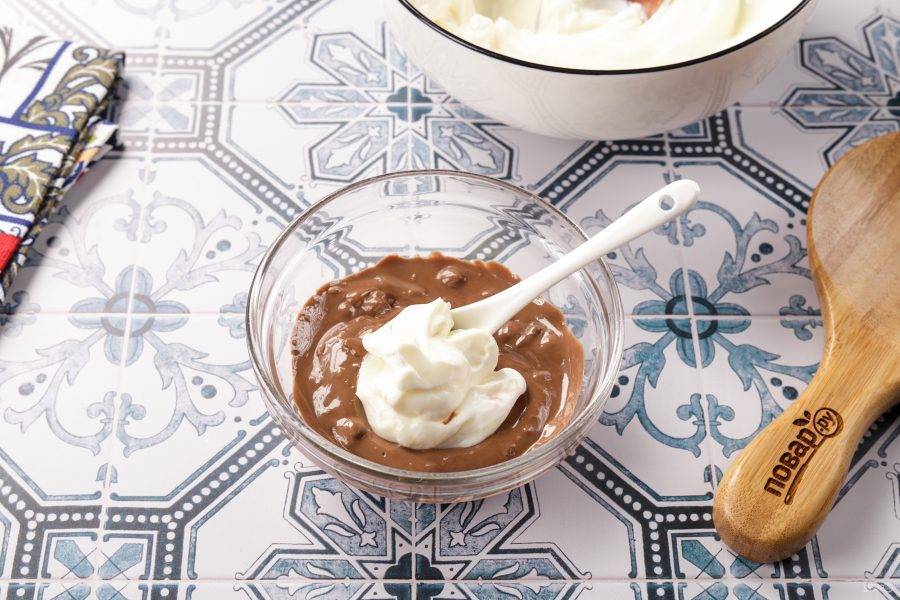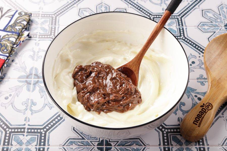 Шоколад поломайте на кусочки и растопите на водяной бане или импульсами в микроволновой печи.