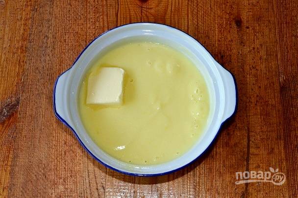 Для начала в глубокую миску отправьте сгущенку. Добавьте соду, погасив ее соком лимона или уксусом.