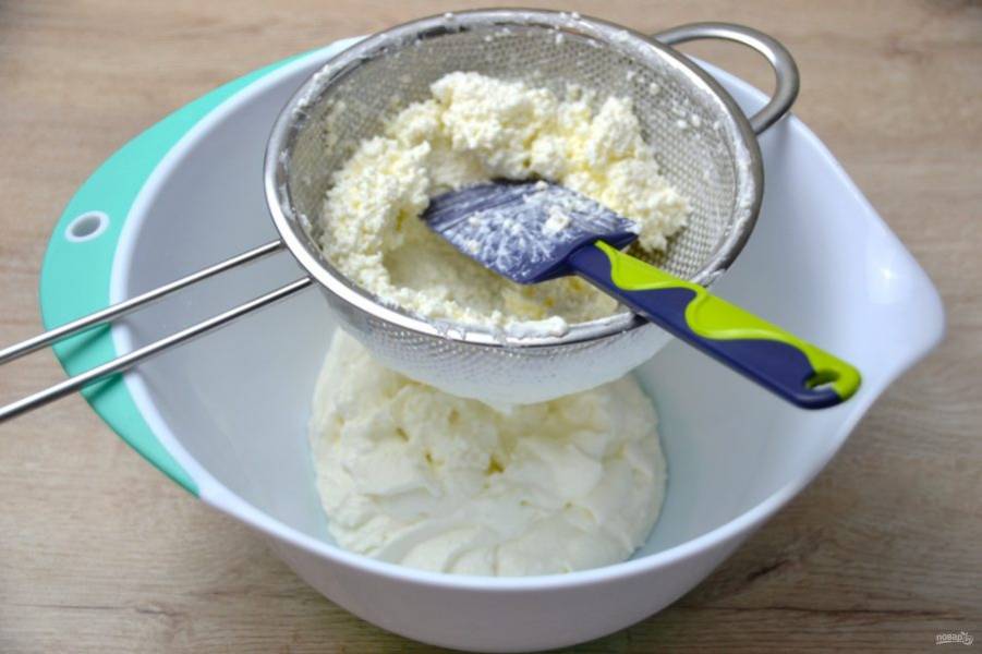 Для получения более нежной структуры, можно перетереть творожную массу через сито.