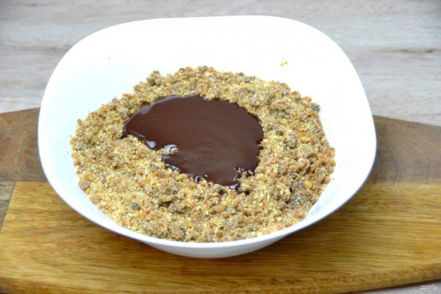 Хорошо перемешайте, чтобы крошка соединилась с шоколадом.