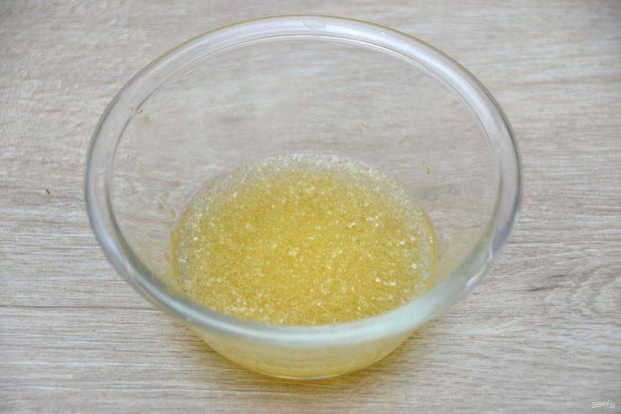 Залейте желатин тремя столовыми ложками воды, дайте настояться 5-10 минут.