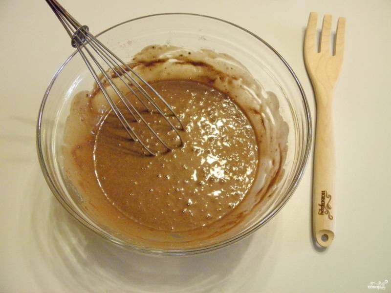 Тщательно венчиком доведите тесто до однородного состояния. Комочков быть не должно.