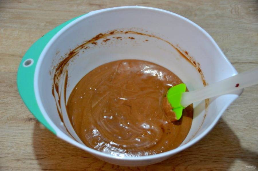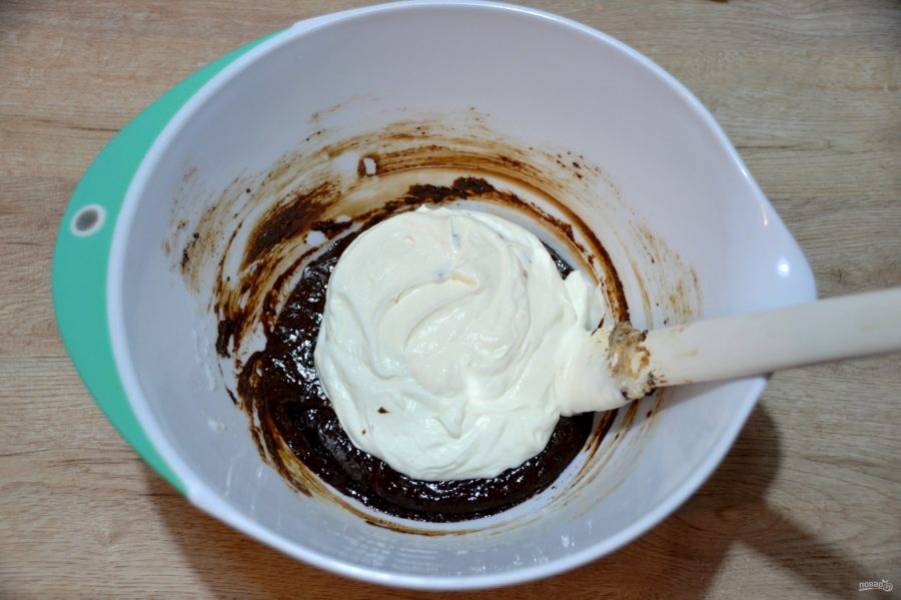 Добавьте к шоколаду взбитые белки и тоже аккуратно вмешайте их.
