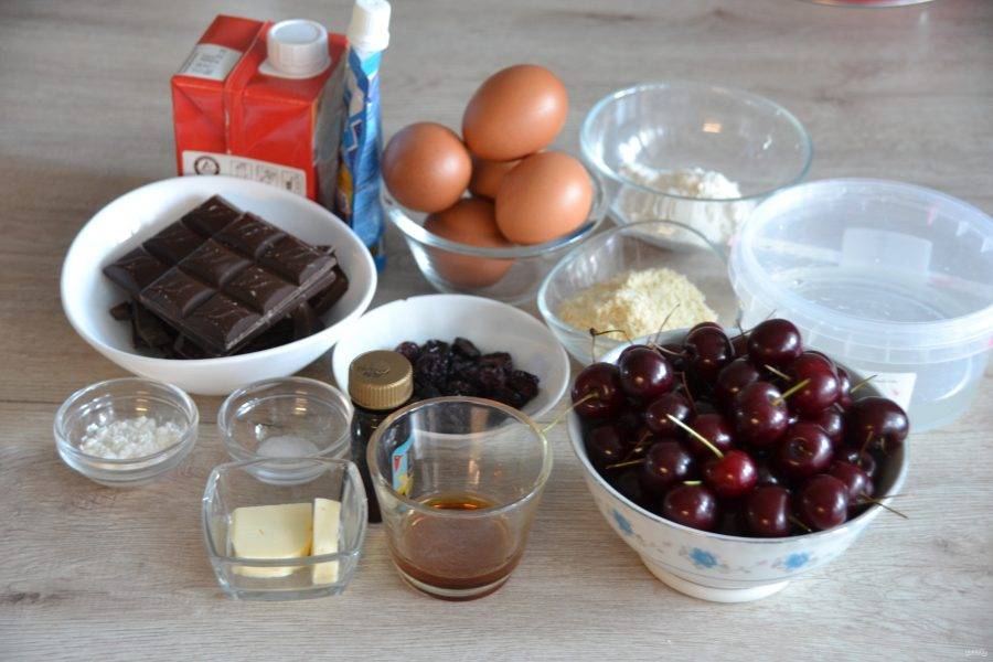 Заранее (за несколько часов) замочите вяленую вишню в ликере "Амаретто".