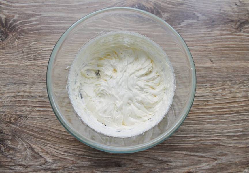 В чистую миску выложите мягкое сливочное масло и взбивайте на медленном ходу в течение 5 минут до пышной массы.