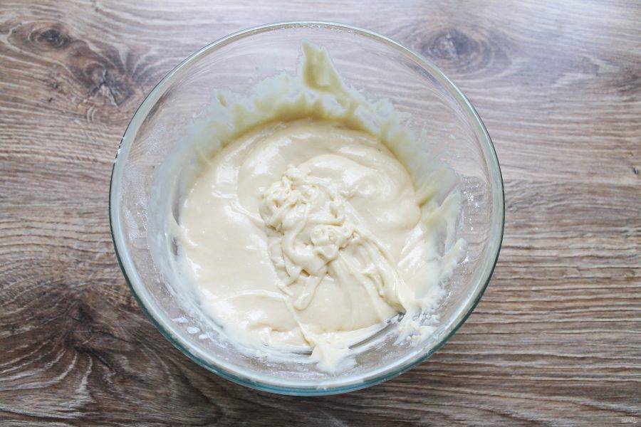 Перемешайте до однородного теста. Оно должно быть как густая сметана.