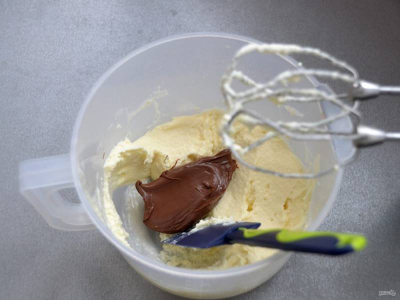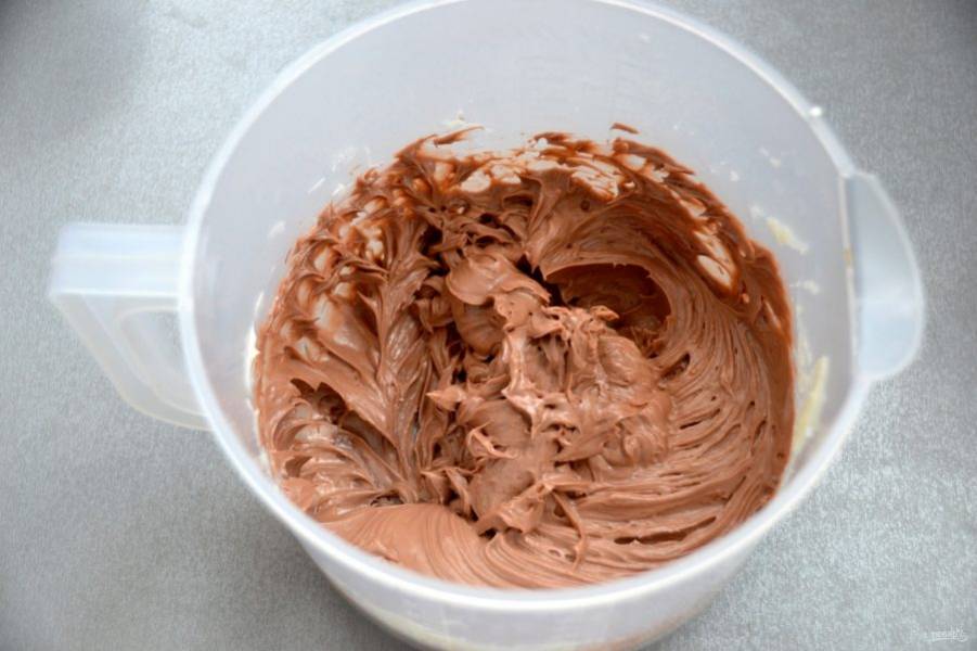 В оставшийся крем добавьте 2 столовые ложки шоколадной пасты.