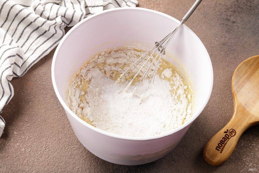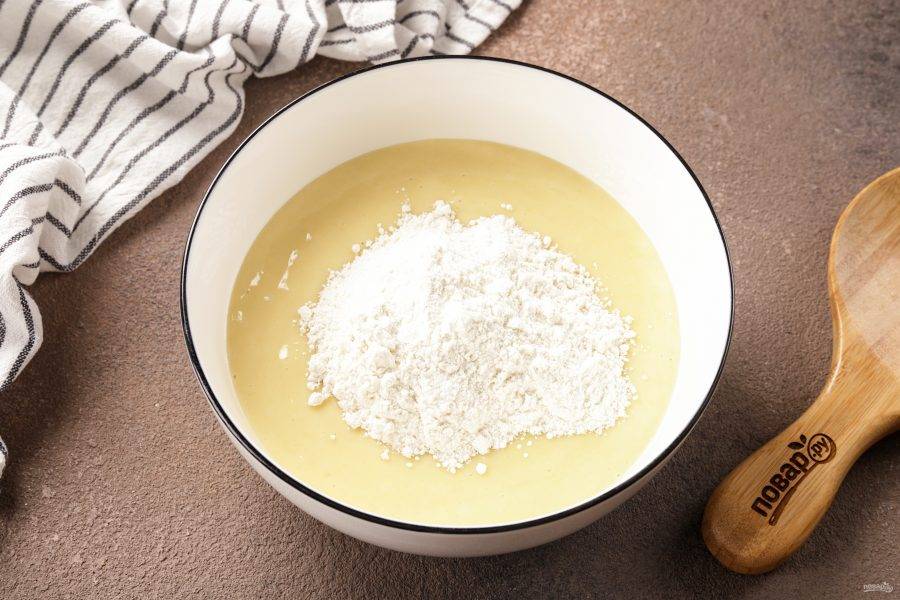 Я добавляю муку в 3 захода, в процессе добавления муки, добавьте разрыхлитель.
