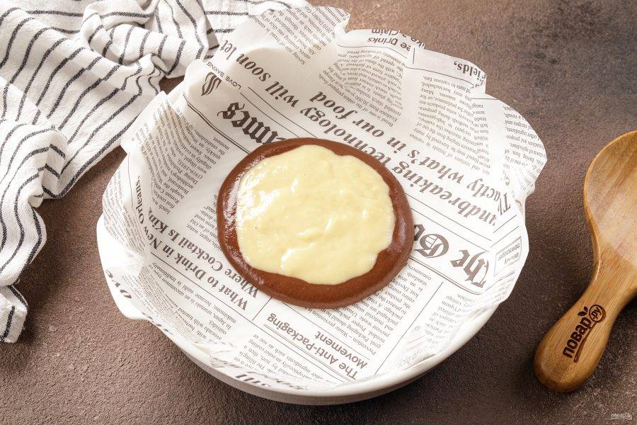 В середину ёмкости налейте тесто одного цвета, старайтесь попасть в самый центр.