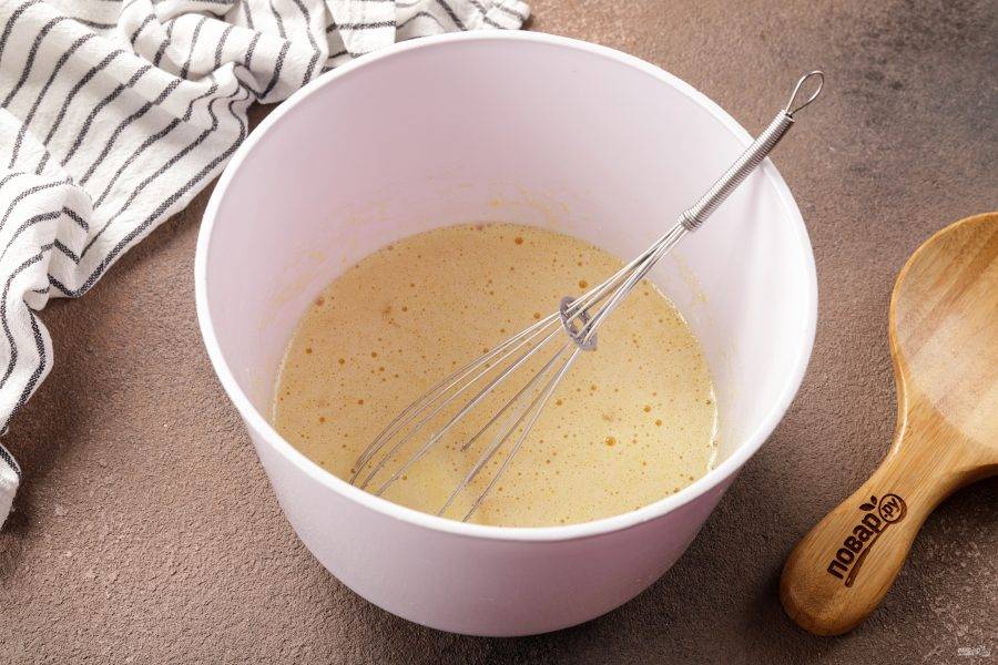 Перемешайте тесто до однородного состояния. Тесто по консистенции должно получиться как жидкая сметана.