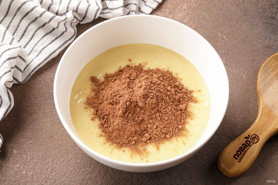 В другую часть теста добавьте какао.