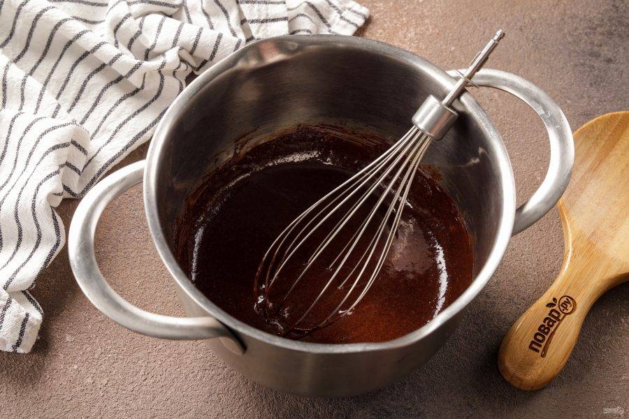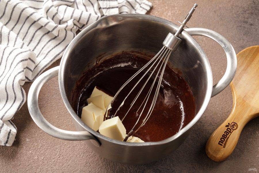 Снимите глазурь с огня и сразу добавьте сливочное масло.