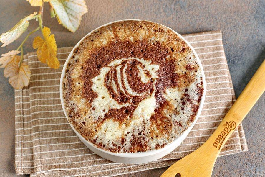 Бисквит можно приготовить по этому рецепту и в духовке. Выпекайте при температуре 180 градусов около 30 минут. Готовность можно проверить деревянной шпажкой или зубочисткой.Похожие рецепты