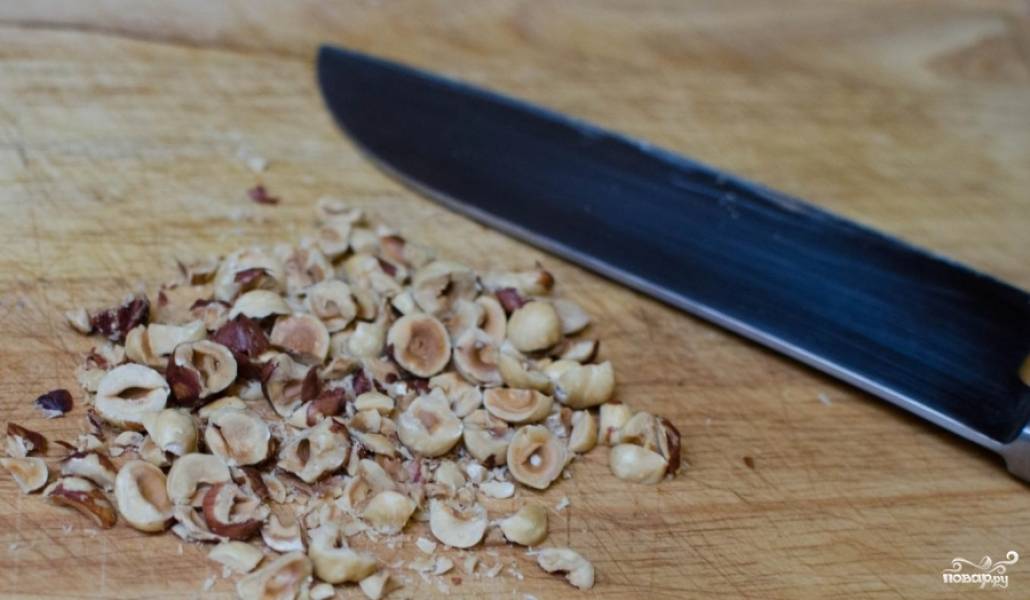 Измельчите орехи.