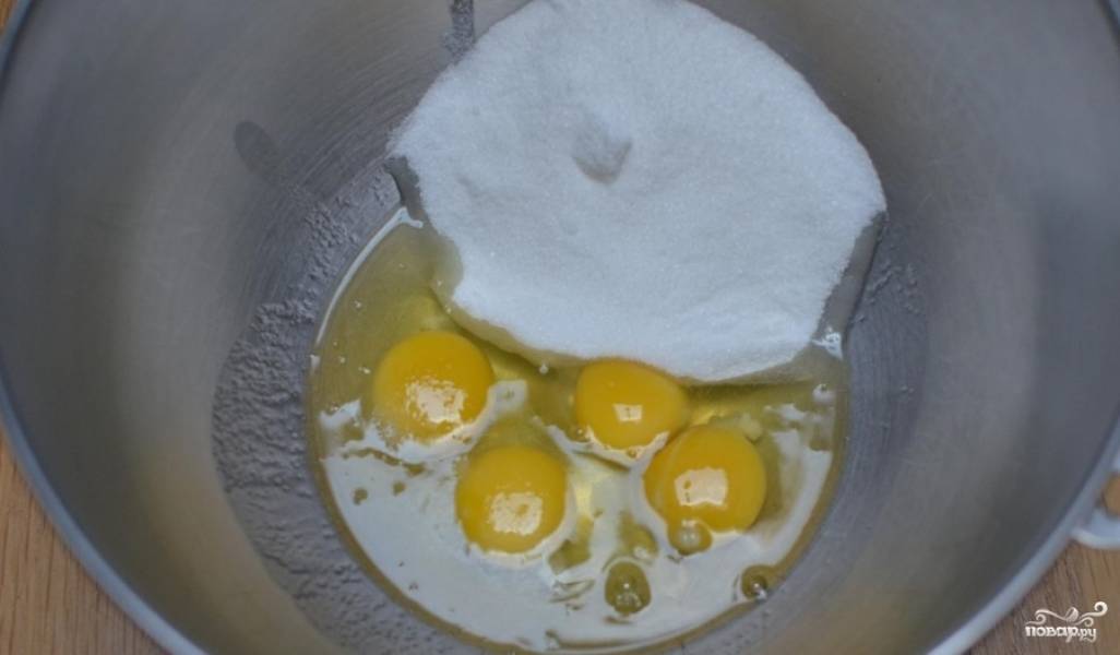 Разотрите яйца с сахаром.