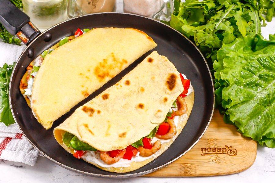 Подсушите тортильи с начинками на сухой сковороде примерно 1 минуту.