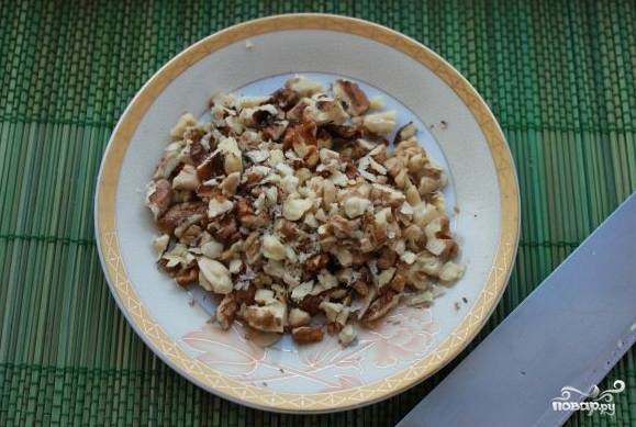 Смешайте муку с разрыхлителем, добавьте ее к полученной массе, туда же добавьте орехи. Добавьте также молоко, взбейте все до однородной массы.