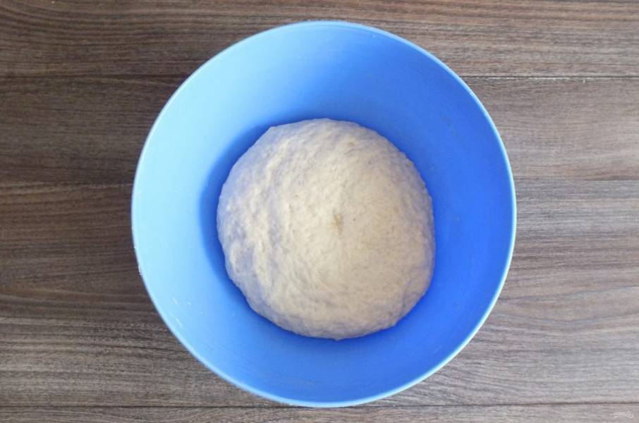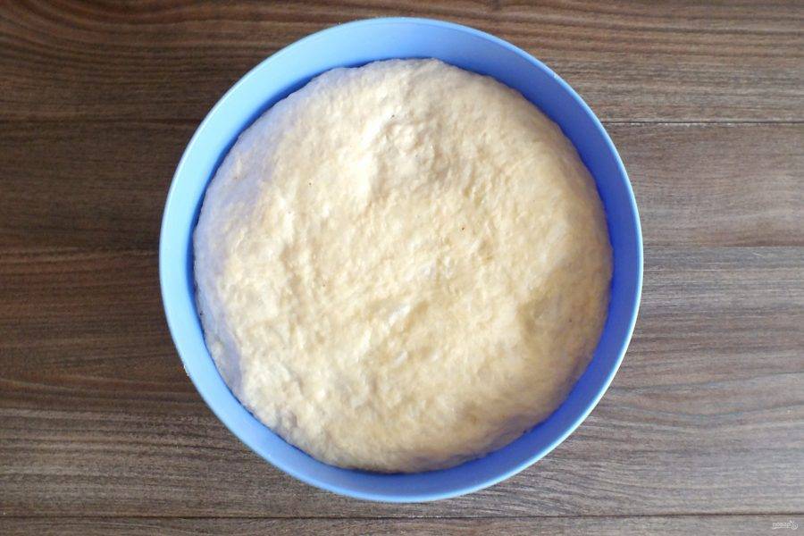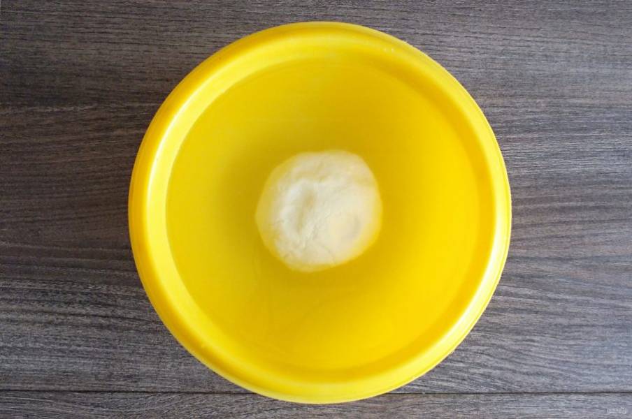 Готовое тесто выложите в чашу, смазанную растительным маслом. Затяните чашу пленкой и уберите в холодильник на сутки.