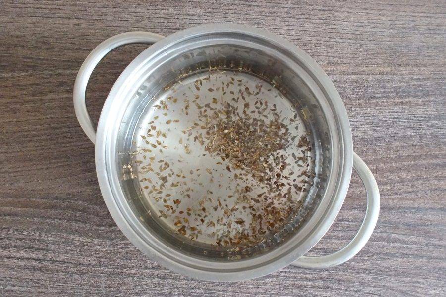 Пока активируется опара, приготовьте пряное масло. В растительное масло добавьте анис и подогрейте до закипания. Сразу же снимите с огня.