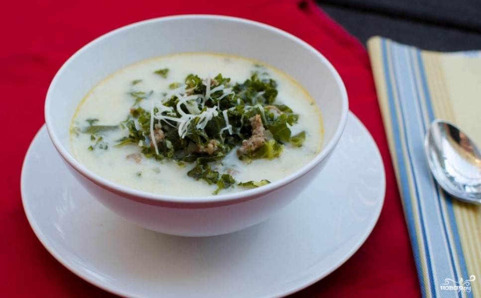 Тосканский суп - это очень красивый и сытный суп, пришедший к нам из северной области Италии. Готовится довольно просто из говяжьего фарша, итальянской колбасы с овощами и сливками.