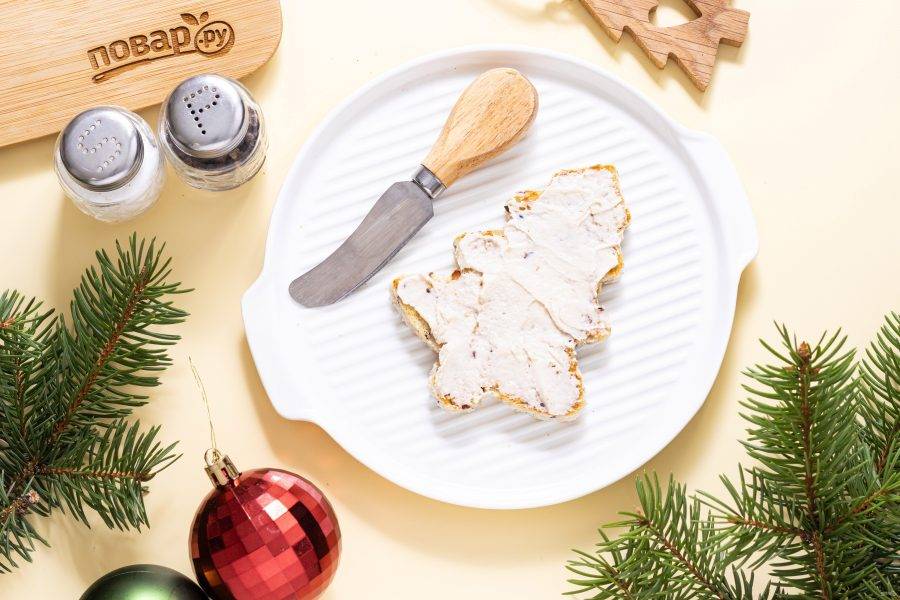 С помощью формы для печенья вырежьте из ломтиков хлеба елочки.