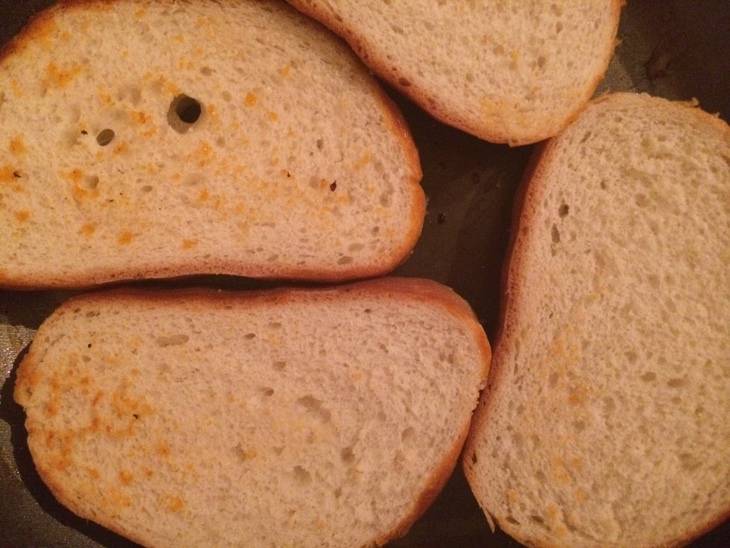 Обжариваем хлеб в сковородке или в тостере.