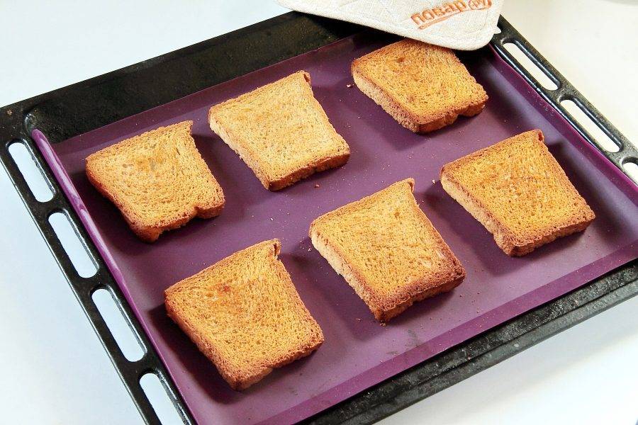 Смажьте хлеб с одной стороны маслом и выложите на противень.