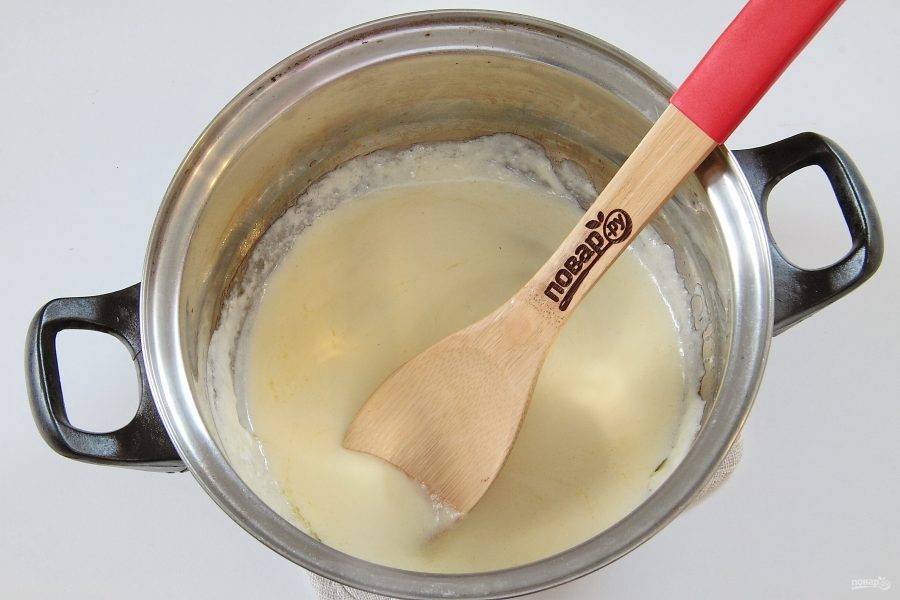 Приготовьте соус. Для этого в небольшой кастрюльке или сотейнике растопите на маленьком огне 50 гр. сливочного масла. Добавьте частями муку и через пару минут влейте струйкой молоко. Добавьте сметану и проварите около 10 минут. В конце добавьте соль и по желанию любимые специи.