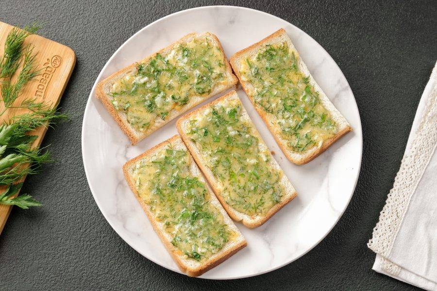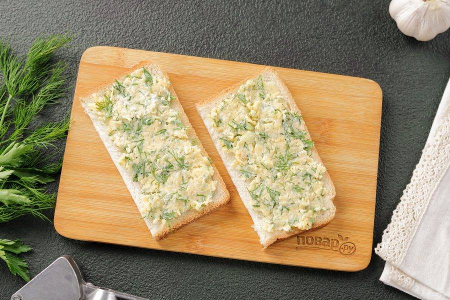 Намажьте хлеб подготовленной начинкой.