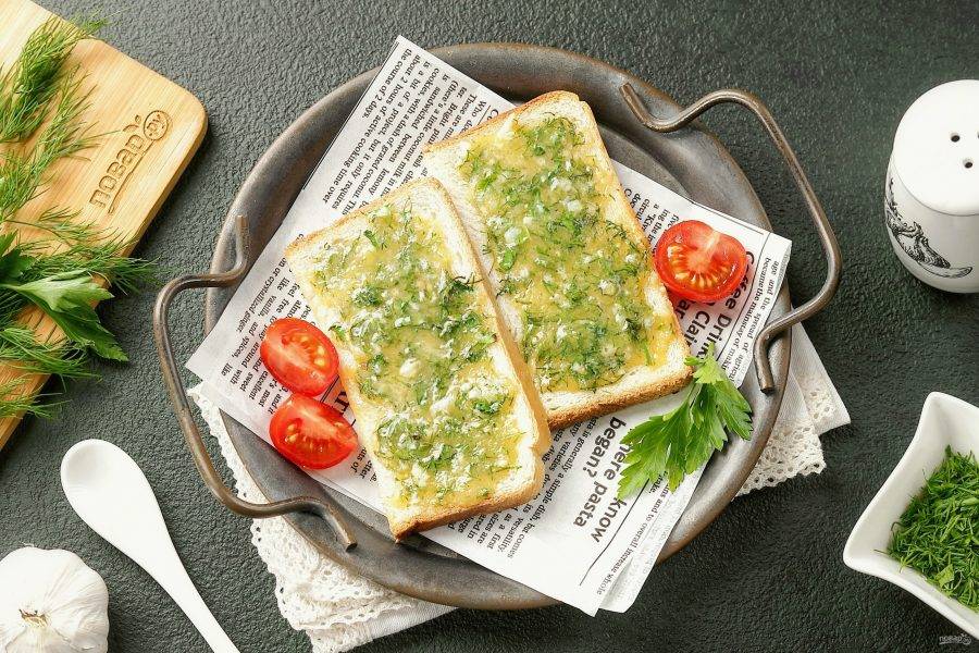 Приготовить тосты в аэрогриле можно на завтрак или в качестве быстрого перекуса в течение дня. Тосты могут быть как сладкие, так и солёные. Сегодня будем готовить с чесночно-сырной намазкой.