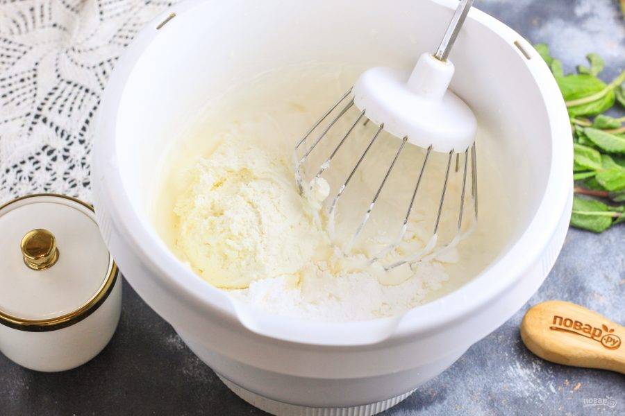 Взбейте охлажденные сливки в течение 3-4 минут до легкой густоты, затем добавьте мягкое сливочное масло, творожный сыр и сахарную пудру. Взбейте еще 2-3 минуты, влив сок лимона.