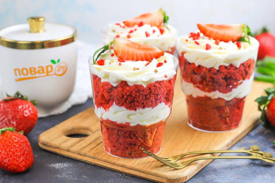 Красочные трайфлы с бархатным вкусом — это действительно невероятное наслаждение вкусом! Обязательно приготовьте их своим близким и подайте этот яркий десерт с ароматным кофе, чаем, лимонадом.