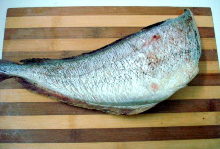 Для начала очищаем треску и хорошенько промываем ее под холодной водой.