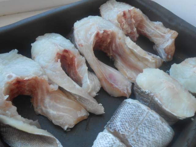 - Рыба 1.5 кг у меня треска,но я пробовал готовить это блюдо и с лососем,тоже очень вкусно.