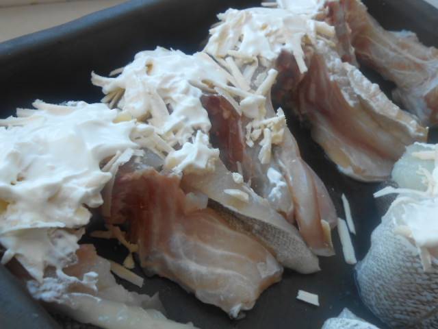 Затем смазать сметаной,в ее отсутствие можно использовать майонез.
