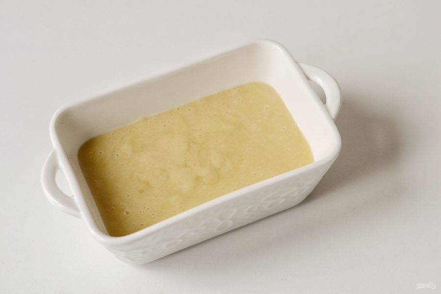 Перелейте получившуюся массу в прямоугольную низкую форму, накройте пленкой. Уберите в холодильник на 8 часов.