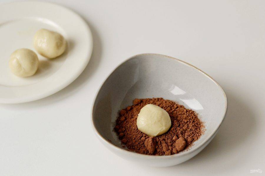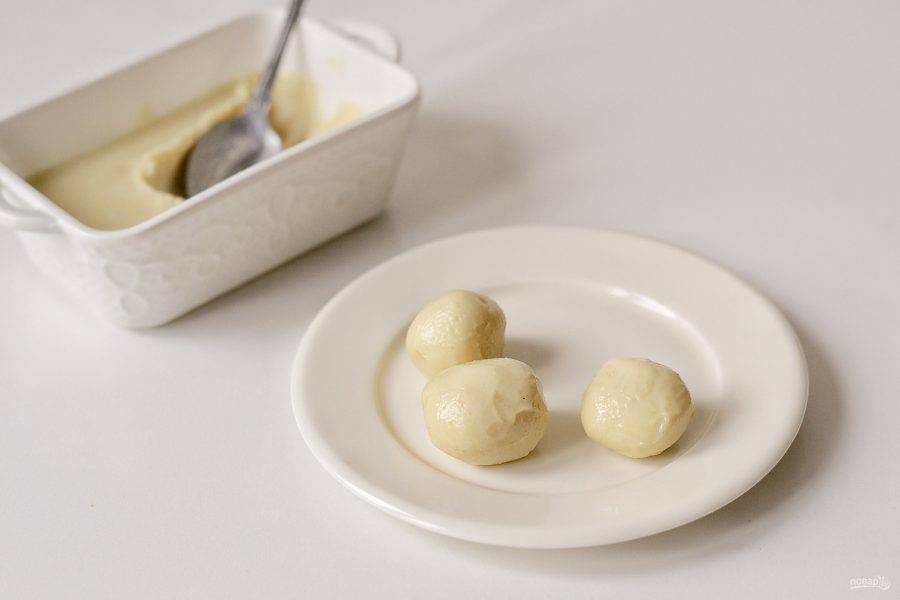 Зачерпните ложкой холодную массу. Скатайте шарики.