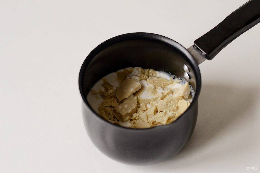 Шоколад мелко измельчите. Добавьте к горячим сливкам, перемешайте, чтобы шоколад растаял. Взбейте блендером до однородности.