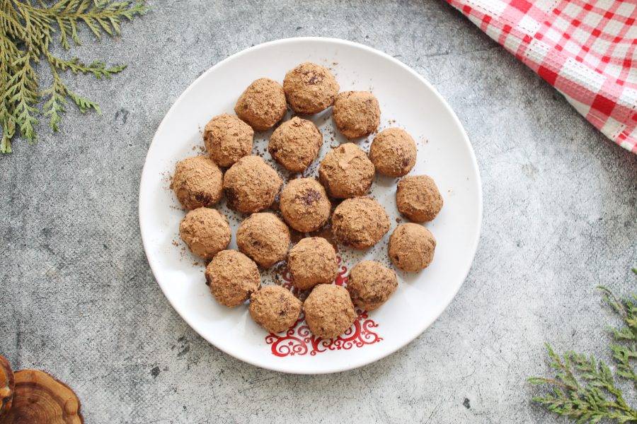 Беря массу столовой ложкой, сформируйте круглые конфеты и выложите на блюдо с пергаментом. Уберите в холодильник на 8-12 часов, чтобы они созрели. Готовые трюфели обваляйте в какао и подавайте к столу.