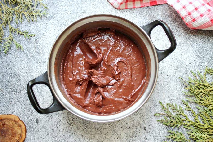 Уберите шоколадную массу в холодильник на 4 часа, положив наверх шоколада пленку.