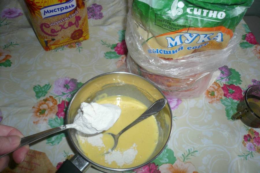 Добавляем муку. Все еще раз перемешиваем до получения однородной массы
