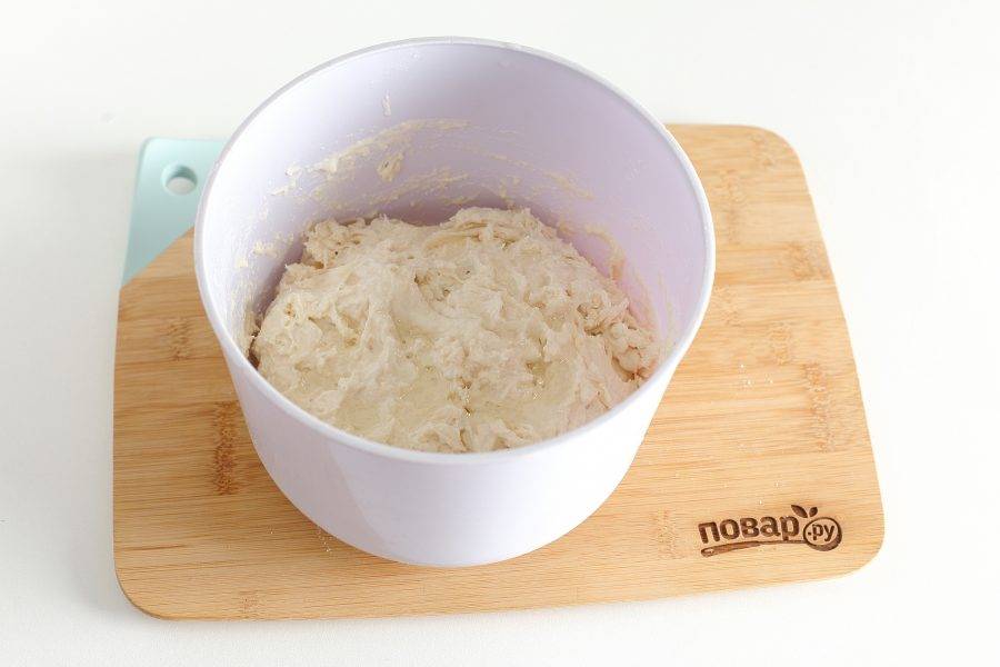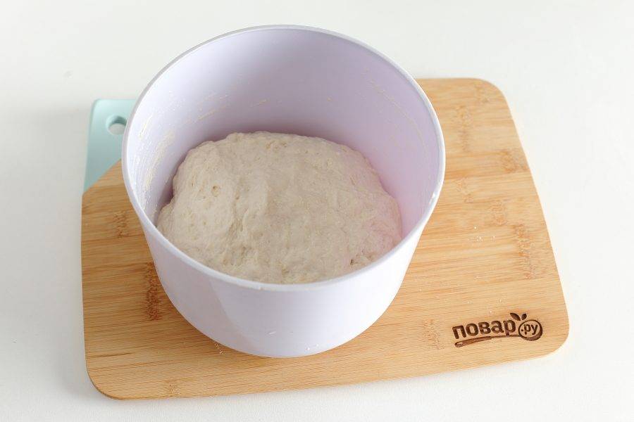 Смажьте готовое тесто и оставьте в теплом месте на 1 час. Миску прикройте полотенцем.