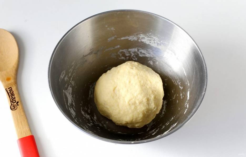 В глубокой миске соедините воду, яйцо, 1/3 ч.л. соли и 1 ст.л. растительного масла. Перемешайте и частями введите муку. Замесите упругое тесто, как на пельмени, соберите его в шар, накройте полотенцем и дайте полежать 20 минут.