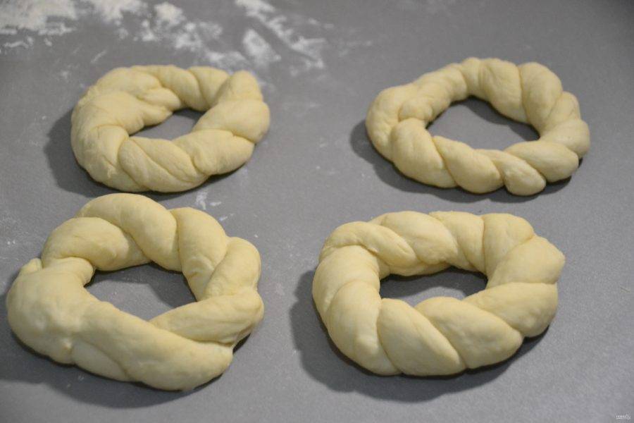 Готовый бублик слегка растяните в стороны, придайте ему необходимую форму.