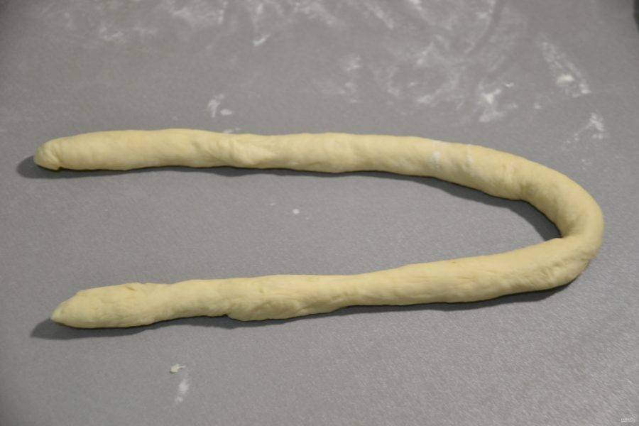 Каждый кусочек теста раскатайте в "веревочку" длиной примерно 80-100 см.