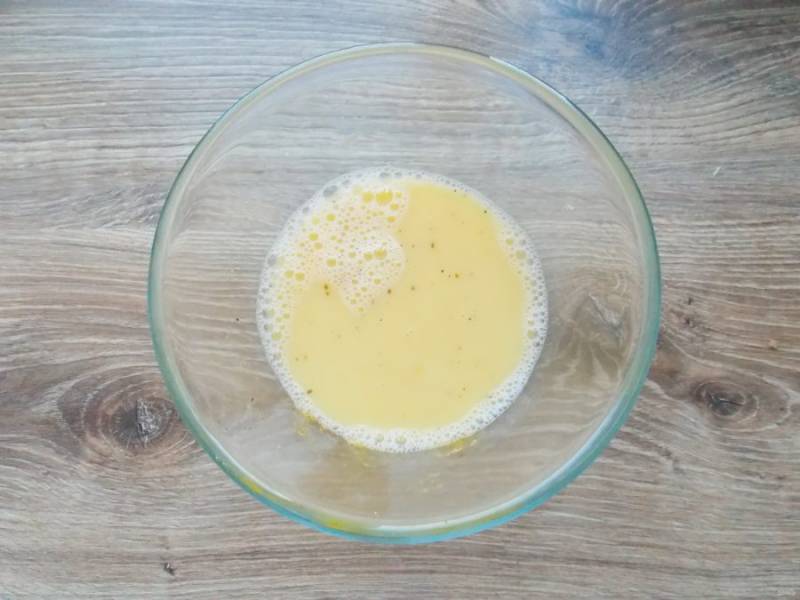 В миску разбейте яйцо, влейте воду и посолите. Перемешайте все до однородности.