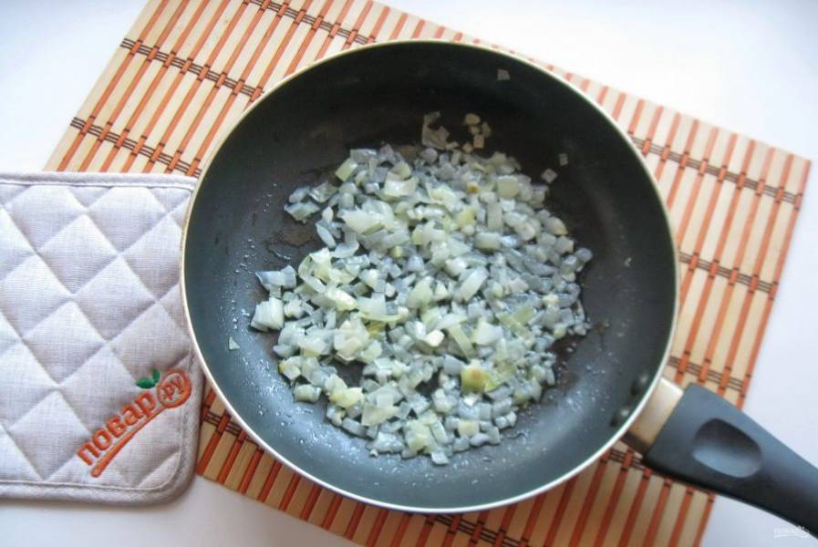 Репчатый лук и чеснок очистите, помойте и мелко нарежьте. Выложите в сковороду.