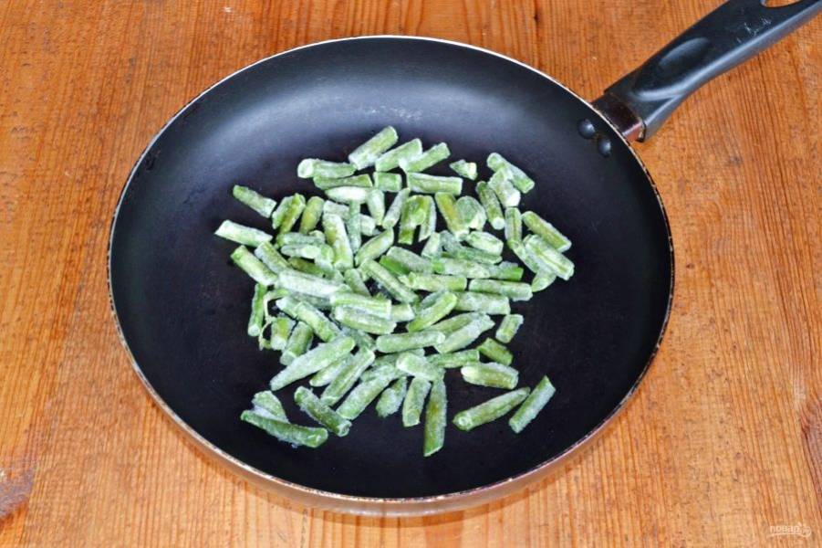 Фасоль у меня замороженная, ее я сразу отправляю в сковороду.